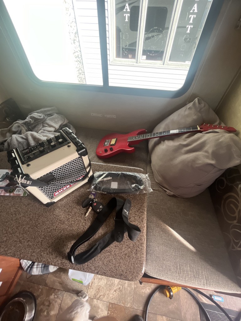 $200 later, I found myself with a battery-powered amp and an ’80s Cruise guitar. After dropping it off in the camper, I explored the town and found a quaint little park in the center of town. Near the beach, I scored an old bike that was in the garbage. I filled the tires with air and went for a bike ride around town. I ended up taking it with me since it was too good to pass up. Armed with the power of music and transportation, I took on the Porcupine Mountains (I say that as if it were actually treacherous… it was not).